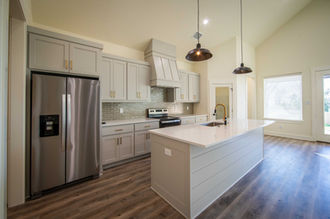 Presenting this exquisite 3-bedroom, 3-bath farmhouse designed for enduring functionality and charm. Its open layout seamlessly blends the kitchen, dining, and great room under vaulted ceilings, creating a spacious and luminous ambiance. The focal point, a stunning staircase adorned with floor-to-ceiling shiplap, adds character to the home. Ascend to the second story suite via the open staircase, featuring a full bathroom and expansive craft/game room. Downstairs, the master bedroom boasts a luxurious bathroom with a soaking tub and oversized shower. A detached 2-car garage offers ample storage space and a loft. Throughout the home, white shiplap accents evoke a timeless Magnolia vibe. Outside, white Hardie lap siding and cedar porch columns complement the asphalt roof. Constructed with 2x6 exterior walls and full-fill open-cell spray foam insulation, alongside a high-efficiency HVAC system and upgraded appliances, this home is built to endure while maintaining efficiency.